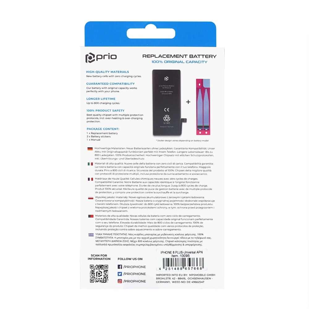 Prio Μπαταρία για iPhone 8 Plus 2691mAh Retail Box PBA-1110